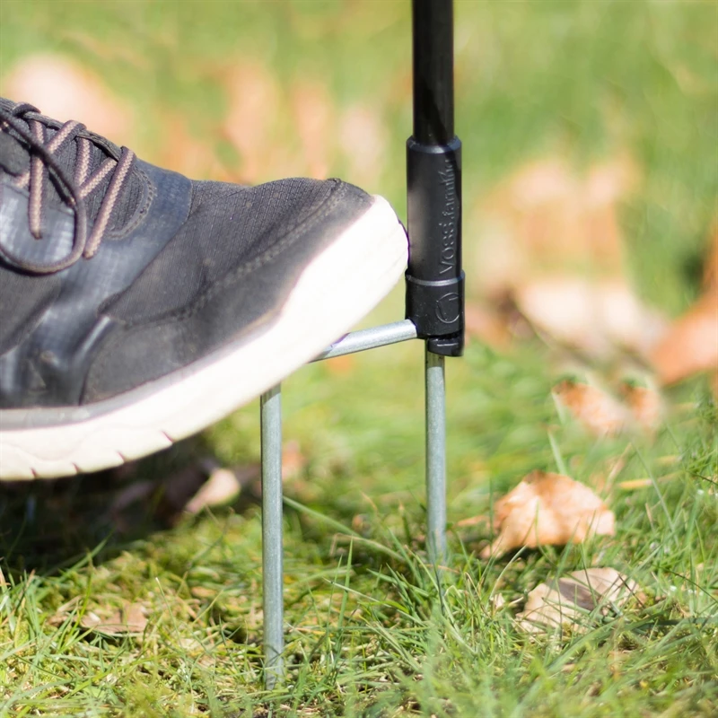 - leicht aufzustellen, Doppelspitze wird mit dem Fuß in den Boden gedrückt