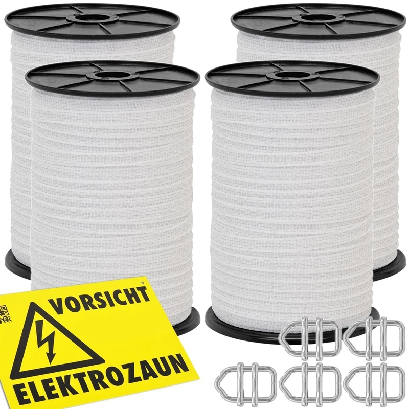 4x VOSS.farming Weidezaun-Band 250m, 10mm, 4x 0,16 Niro, weiß 1* + 5x Verbinder
