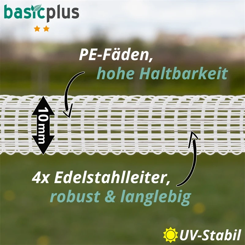 Ein Klassiker unter den schmalen Elektrozaunbändern – sehr vielseitig einsetzbar, robust, seit Jahren beliebt!