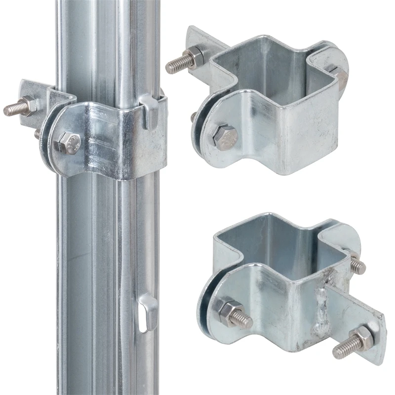 Für noch mehr Standfestigkeit und Stabilität können Sie Querverstrebungen anbringen. Hierfür wird der Z-Profilpfahl unten in die Aufnahmen des Erdtellers und oben in die Kappe gesteckt. Den Erdteller schlagen Sie im 45°-Winkel in die Erde, so verhindern Sie ein weiteres Eindringen oder Wegrutschen der Querstrebe. Jetzt können Sie die Schelle und die Kappe mit dem Z-Profilpfosten verschrauben. Durch ein Verschieben der Schelle können Sie den Druck auf die Querstrebe verändern, sodass der Z-Profilpfahl einen festen Halt hat.