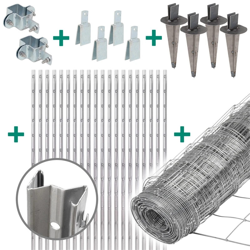 50m VOSS.farming Premium Plus Wildzaun Komplettset 100/8/30 + Z-Profilpfosten + Schellen + Kappen + Erdteller