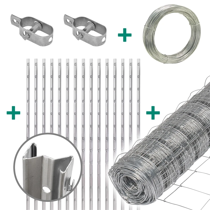 50m VOSS.farming Premium Wildzaun Komplettset 100/8/15 + Z-Profilpfosten + Spanndraht + Drahtspanner