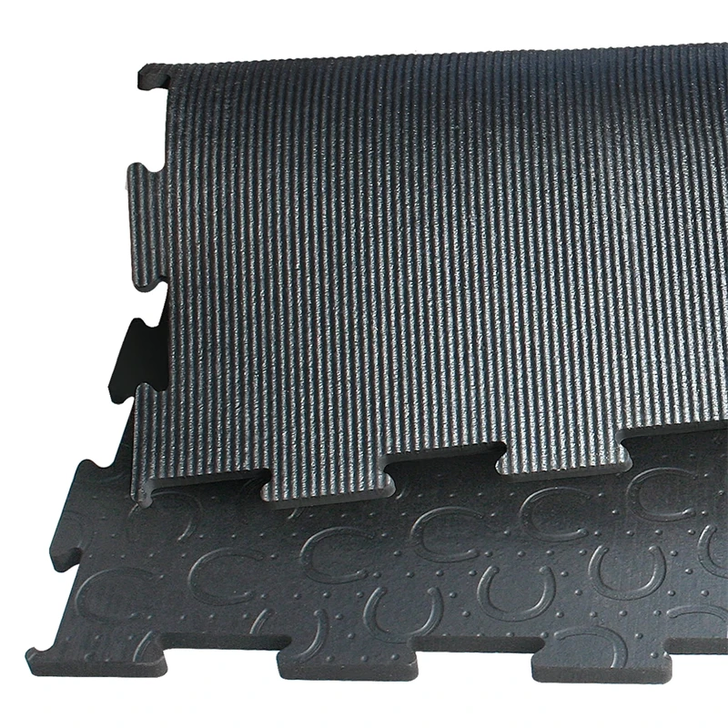 Der 4-seitig gepuzzelte Rand ermöglicht eine präzise Verlegung ohne eine zusätzliche Verschraubung am Boden. Sie können die Gummimatten leicht mit einem Cuttermesser oder einer Stichsäge anpassen, um sie an die Bedürfnisse Ihres Stalls anzupassen.