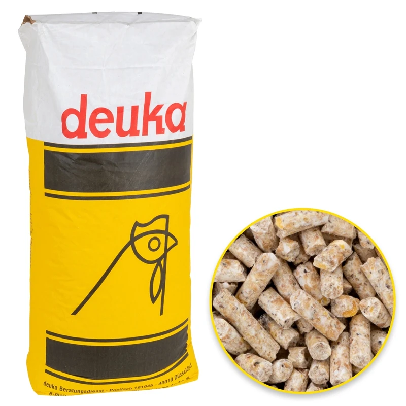 Das Alleinfutter sorgt für eine bedarfsgerechte Nährstoffversorgung, sowie für hohe Gewichtszunahmen und gute Futterverwertung bei Mastgeflügel. Dieses Alleinfuttermittel ist für die gesamte Mastperiode geeignet! Es deckt den täglichen Bedarf an Nährstoffen, Mineralstoffen, Vitaminen und Spurenelementen. Dank der gekörnten Form bietet es eine gleichmäßige Aufnahme aller Ernährungsbausteine. Das deuka Geflügelmastfutter enthält kein Kokzidiostatikum und kann daher bis zum letzten Tag vor der Schlachtung gefüttert werden.