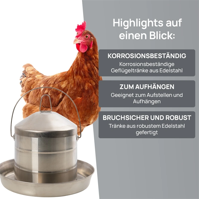 - 1x Edelstahl Geflügeltränke mit Griff, Wassertränke für Hühner und Geflügel