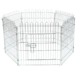 Das Zaunset besteht aus verzinktem Metall, was Langlebigkeit bietet. Der Abstand zwischen den Gittern beträgt 2,8cm. Die Maße des Produkts sollten vor Kauf überprüft werden, sodass Sie sichergehen können, dass die Abstände zwischen den Gittern zu den Bedürfnissen Ihres Tieres passen.