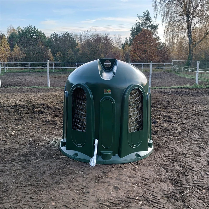 - 1x Heuglocke mit 5 Fressöffnungen und integriertem Heunetz, für Rundballen bis Ø 150cm