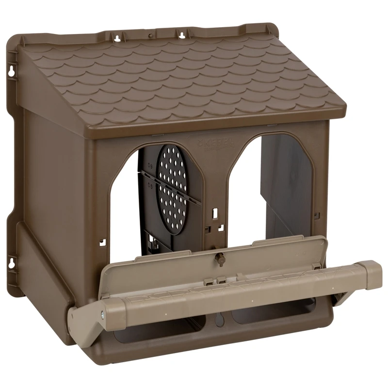 Die Legenester lassen sich für einen erhöhten Komfort einstreuen und sind zudem sehr leicht zu reinigen. Von außen bleibt das Legenest sauber, da sich die Hühner nicht auf der Dachschräge niederlassen können.