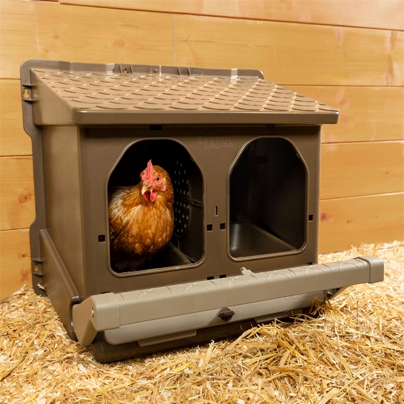 - 1x KERBL Doppel-Legenest für Hühner – Abrollnest aus recyceltem Kunststoff, 2 Abteilungen