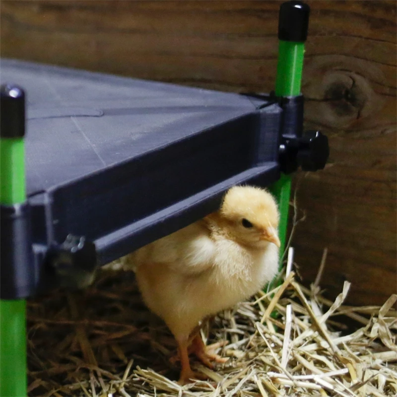 Mit der Wärmeplatte „CosyHeat“ wird die Wärme unter dem Federkleid der Glucke simuliert. Die Küken schlüpfen unter die Platte und können sich in der kuscheligen Wärme darunter ausruhen. Zudem strahlt die Platte die Wärme nach unten ab, sodass ein Wärmepolster entsteht, ähnlich wie bei der Mutterhenne.