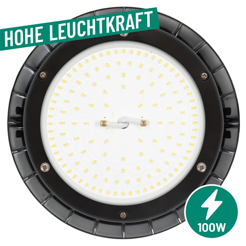 - 1x LED-Hallenstrahler 100 Watt – Strahler für Hof, Heuboden, Reithallen und Ställe, dimmbar
