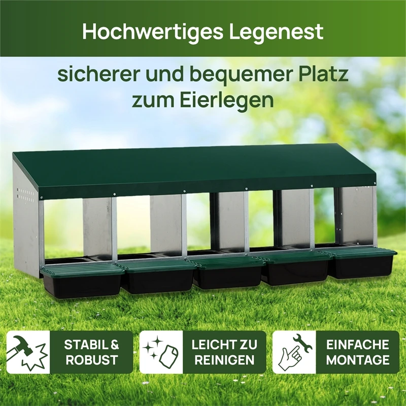 Das stabile Hühner Legenest bietet genügend Platz, Zeit und Ruhe, um Eier zu legen. Ihre Hühner werden das Nest schnell annehmen und gerne nutzen. Der Kunststofftritt am Eingang ermöglicht einen bequemen Einstieg.