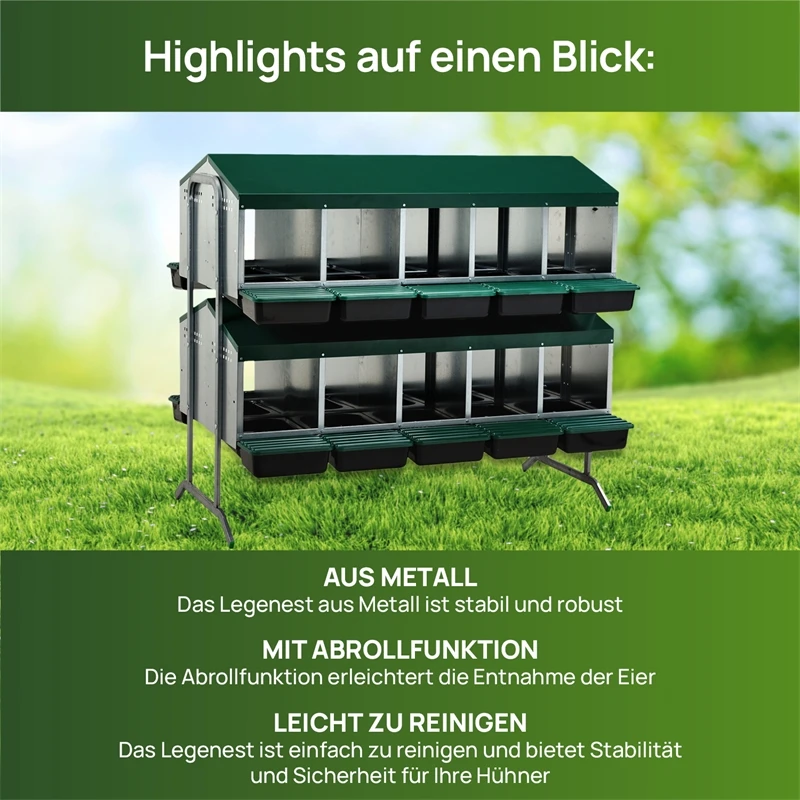 Legenest für Hühner aus Metall – Abrollnester mit Doppelständer, doppelseitig