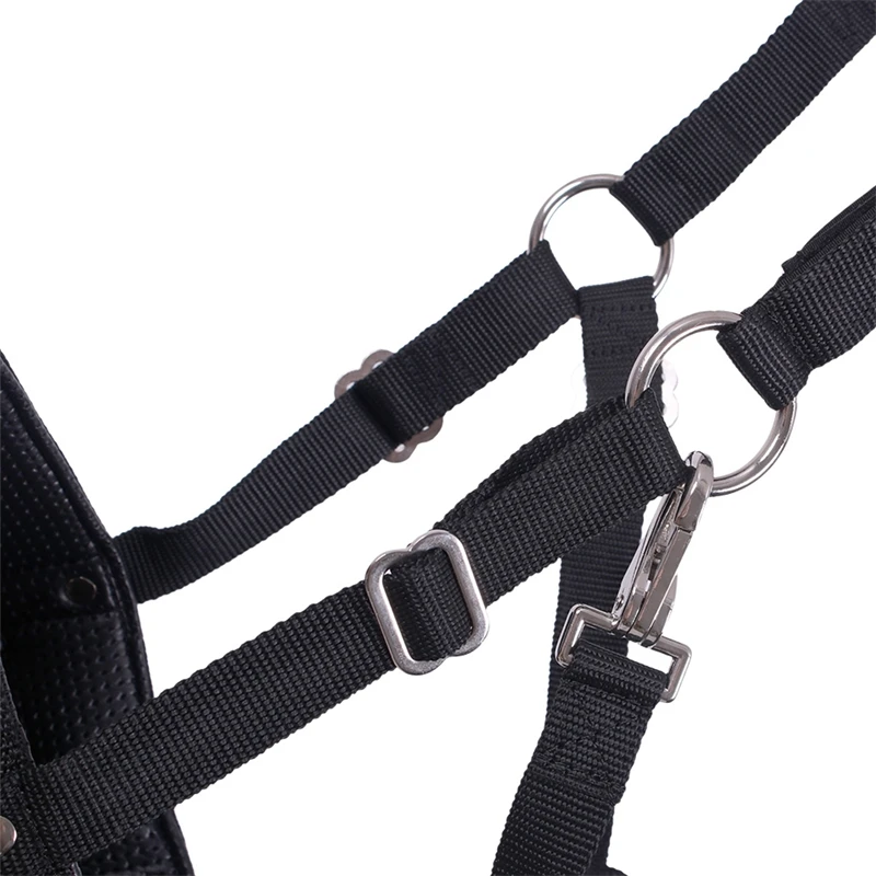Die Fressbremse ist direkt mit dem Halfter verbunden, was das Anbringen sehr vereinfacht. Im Maulbereich ist der Maulkorb verstärkt, um ein Durchscheuern zu verhindern. Das Nackenstück ist weich unterlegt. Der Bereich der Nüstern wurde ausgespart, sodass ein freies Atmen möglich ist. Ihr Pferd kann durch die Fressbremse trotzdem grasen, allerdings im gemäßigten Tempo und in kleineren Mengen.