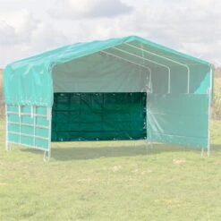 Die Rückplane bietet einen umfassenden Schutz vor Sonne, Regen, Schnee und anderen Umwelteinflüssen. Sie sorgt dafür, dass das Weidepanel-Zelt und seine Inhalte trocken und geschützt bleiben.