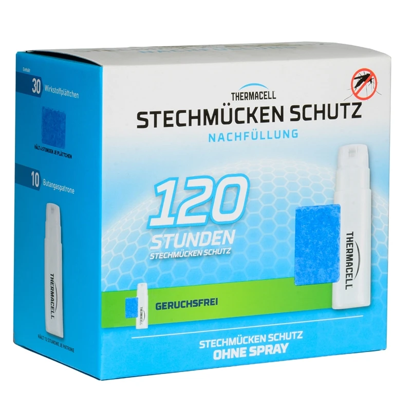 Das Thermacell Nachfüllpack ist die ideale Ergänzung für alle Thermacell-Geräte und bietet einen 120-stündigen Schutz vor lästigen Mücken und weiterem Ungeziefer. Das Pack enthält 10 Gaspatronen und 30 Wirkstoffplättchen, die flexibel und nach Bedarf austauschbar sind.