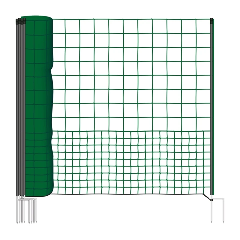 Das Hütenetz hat eine Länge von 50m, ist 125cm hoch und überzeugt durch gute Qualität und ein starkes Preis-Leistungs-Verhältnis. Es kann in wenigen Minuten ohne Werkzeugeinsatz errichtet werden. Das einfache, leichte Design ermöglicht es, den Zaun schnell zu bewegen und umzusetzen. Diese Handhabung erlaubt ein schnelles Einrichten von Geflügelgehegen. Das Weidezaunnetz kann für die verschiedensten Bereiche eingesetzt werden, aber oft wird das Hütenetz zum Einzäunen von Geflügel genutzt, weil dieses empfindlich auf Strom reagiert. Hühner lassen sich auch ohne Strom hüten. Ein stromloses Netz wird unter anderem auch gerne dort aufgestellt, wo sich kleine Kinder im Bereich der Einzäunung aufhalten könnten, oder bei Tierausstellungen mit Zuschauerverkehr. Das Netz weist im unteren Bereich eine sehr enge Maschenweite von 50mm auf, so dass das Geflügel nicht durch die Maschen schlüpfen kann. 60 mitgelieferte Heringe verankern das Netz fest am Boden und verhindern somit das Durchschlüpfen unter der Bodenlitze. Wir bieten Ihnen mit diesem Netz also eine sehr hohe Hütesicherheit ohne Strom.