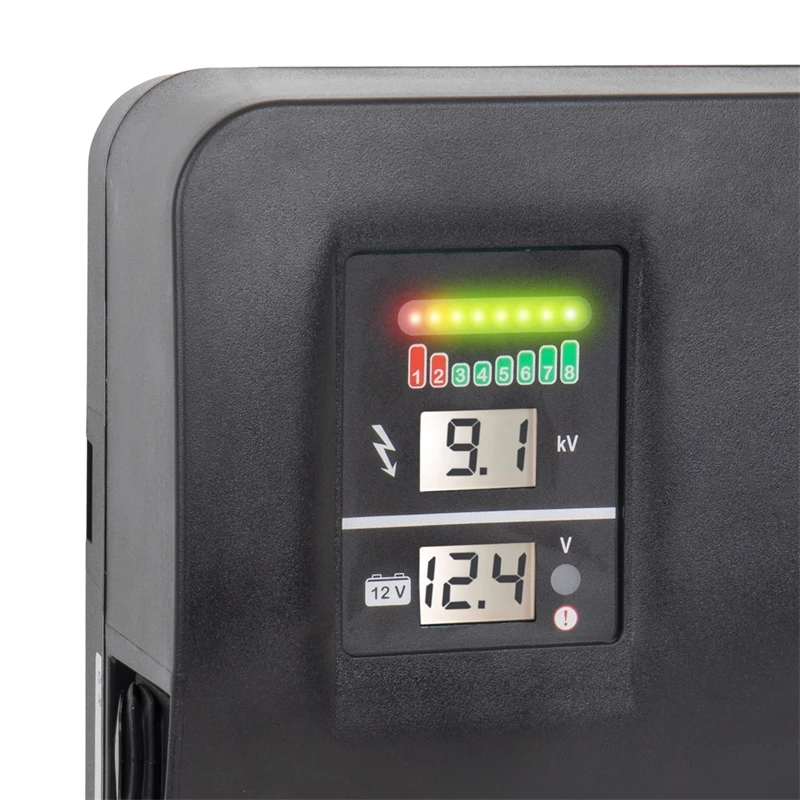 - digitale Displayanzeige für Zaun- und Akkuspannung (+ Warn-LED Akkuzustand)