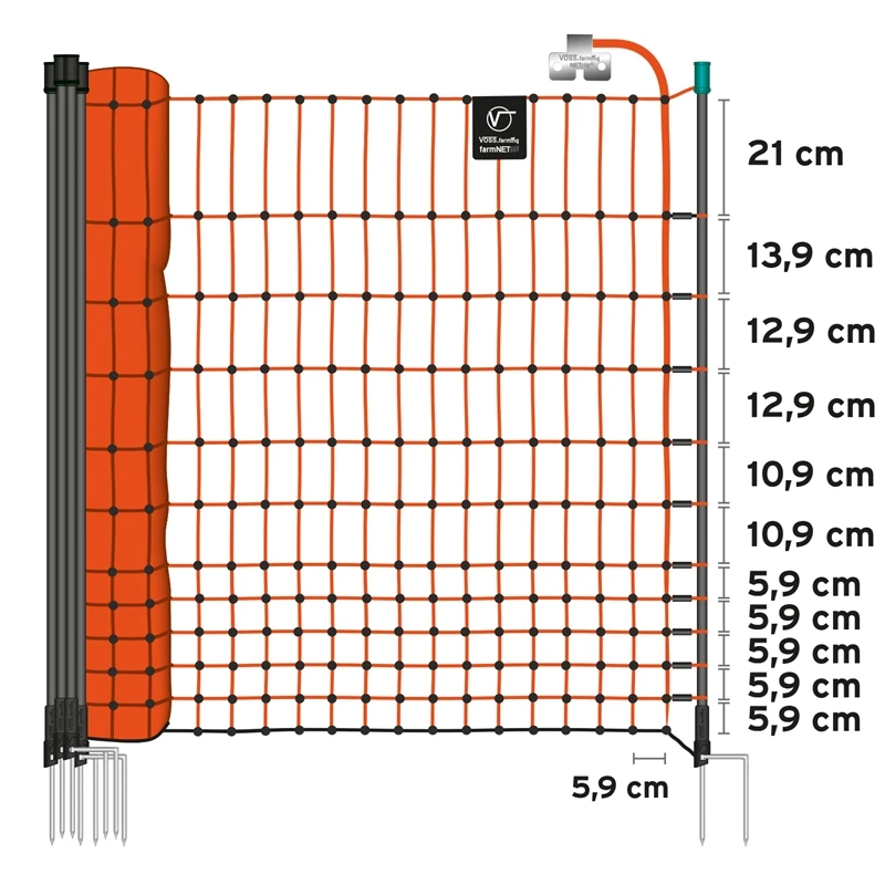 - 1x VOSS.farming® farmNET® 25m Geflügelnetz, 112cm, 9 Pfähle, 2 Spitzen, orange