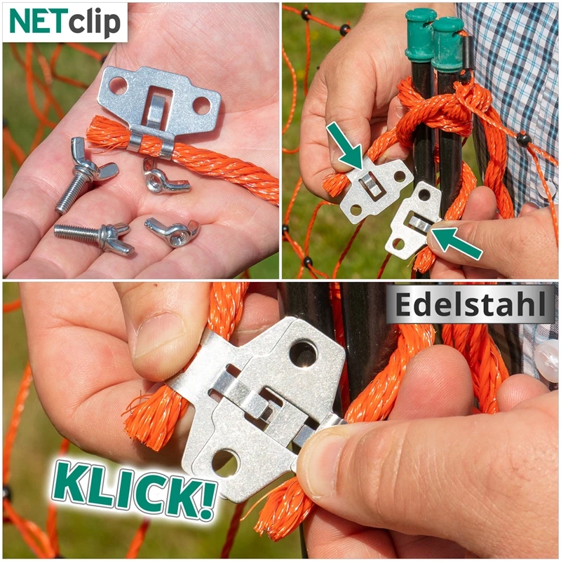 - mit dem NETclip® aus hochwertigem Edelstahl wird das Anschließen sehr einfach
