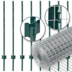 VOSS.farming Gartenzaun-SET: Volierendraht 10mx100cm + 8x Metall Zaunpfosten