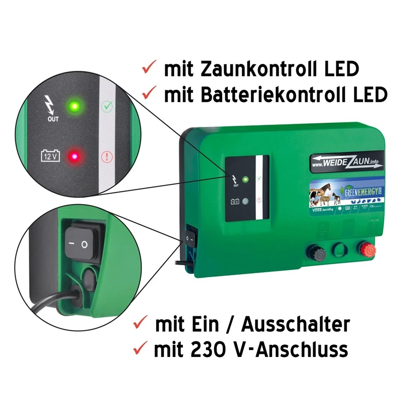 - 1 x VOSS.farming „GreenEnergy“ Weidezaungerät 12 V