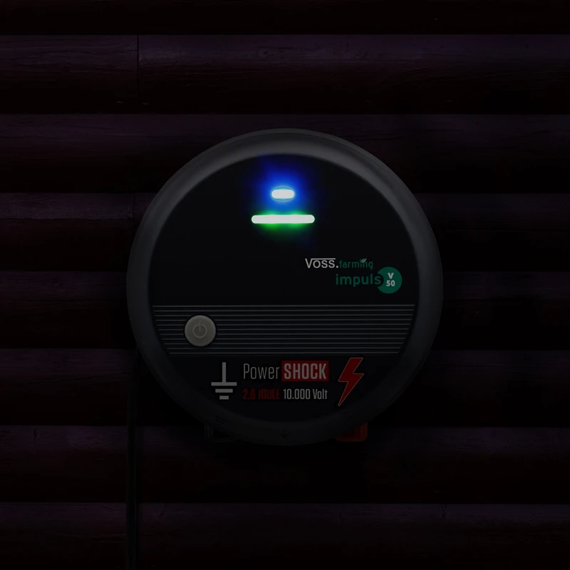 Im „impuls V50“ stecken neben moderner Hochleistungselektronik auch unsere jahrzehntelange Praxiserfahrung als Experte für Weidezauntechnik. Mit Mikrocontroller gesteuerter, speziell modellierter Impulsform sorgt die PowerShock-Technik für Hütesicherheit. Das VOSS.farming impuls hält vielen Witterungsbedingungen stand, wie z.B. Regen, direkter Sonneneinstrahlung und Frost.