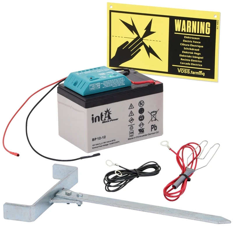 VOSS.farming „KAPPA 7 SOLAR“, starkes Weidezaungerät komplett mit 12 Watt Solarmodul + 12 Volt Blei-Vlies-Akku 12Ah