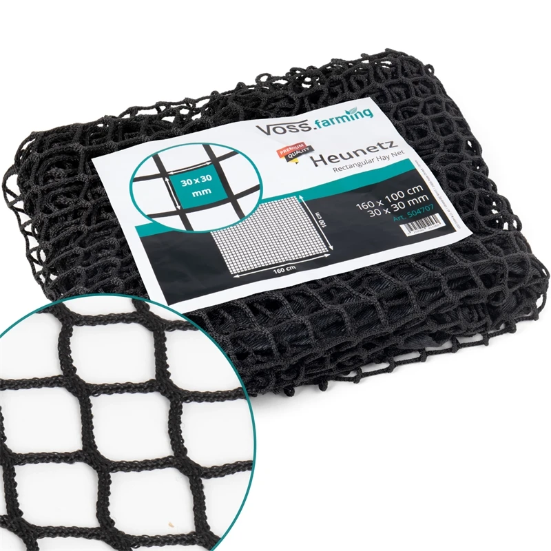 - 1x VOSS.farming Rechteckiges Heunetz, Heunetztasche 160 x 100cm, Maschenweite 3 x 3cm, schwarz