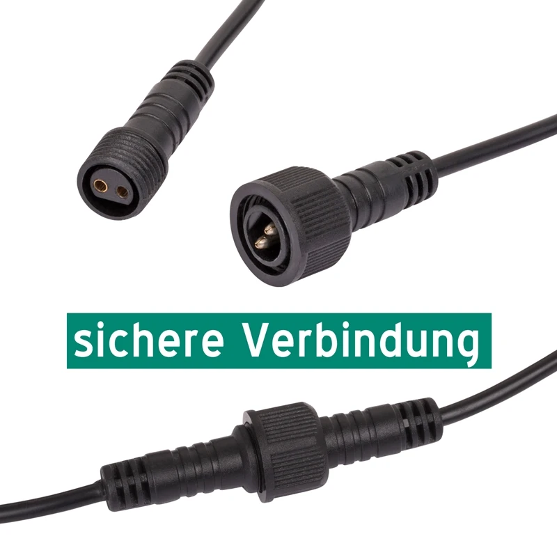 Das mitgelieferte Netzteil ist für den einfachen, schnellen Anschluss in Innenräumen geeignet. Wir empfehlen Ihnen unser Netzteil (Art. Nr. 44228) mit der Schutzklasse IP44 zu verwenden, das für einen Anschluss im Außenbereich geeignet ist und als passendes Zubehör erworben werden kann