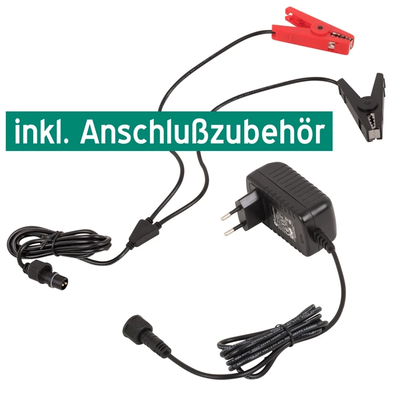 - 1x 12V Akkuanschlusskabel „Krokoklemme“