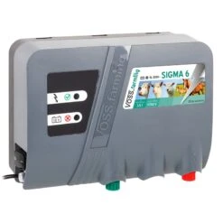 Die 9.750 Volt Spannung und Schlagpower von 3,5 Joule sorgen für eine zuverlässige und sichere Einzäunung. Das Gerät kann mit Netzanschluss, Batterie / Akku oder einem Solarsystem betrieben werden und eignet sich für die verschiedensten Einsatzzwecke. Ein Netzadapter und Akkuklemmen, beide mit einer Steckverschluss Schraubsicherung, werden mitgeliefert. Somit ist das Weidezaungerät sofort einsatzbereit. Ein Tief-Entladeschutz schont und schützt den Akku. Im „SIGMA 6“ ist eine moderne Stromsparschaltung verbaut, die dafür sorgt, dass sich der Stromverbrauch dem Zustand des Zaunes automatisch anpasst. Es verfügt über eine moderne LED-Zaun- und Batteriekontrolle, wodurch Versorgungs- oder Zaunprobleme sofort erkannt und behoben werden können.