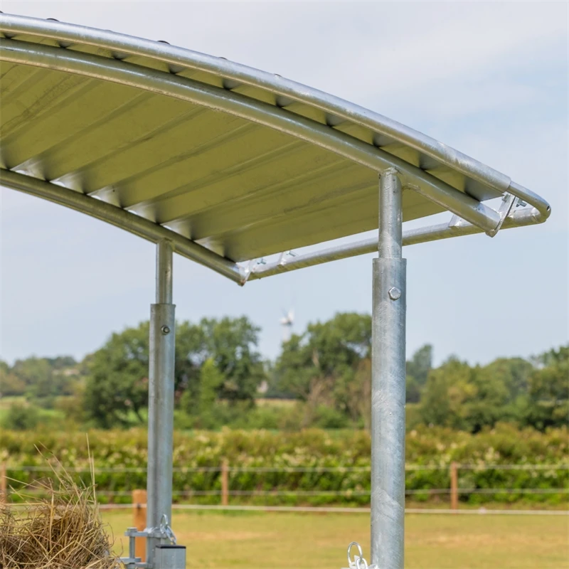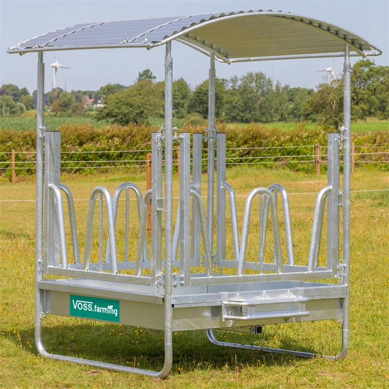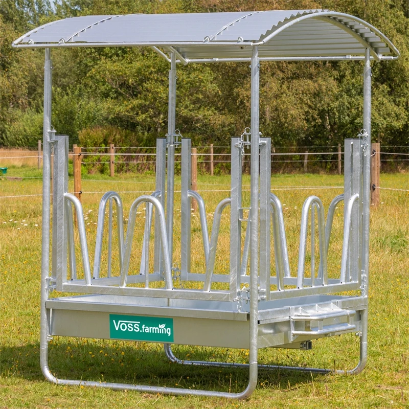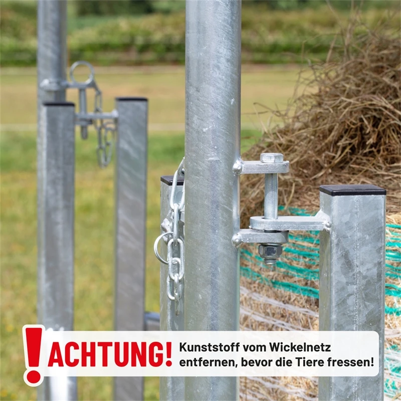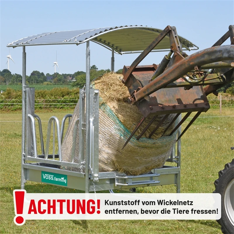 VOSS.farming Viereckraufe „Hobby“, Futterraufe, Rundballenraufe mit Dach und Palisadenfressgitter, höhenverstellbar