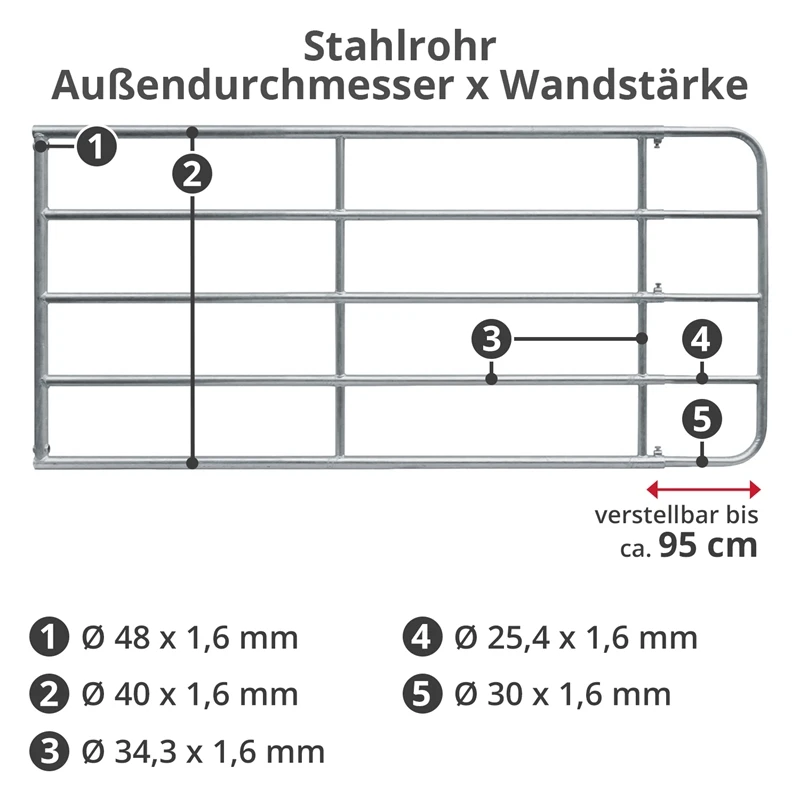 - Verstellbare Variante, um den Zugang zur Weide zu sichern