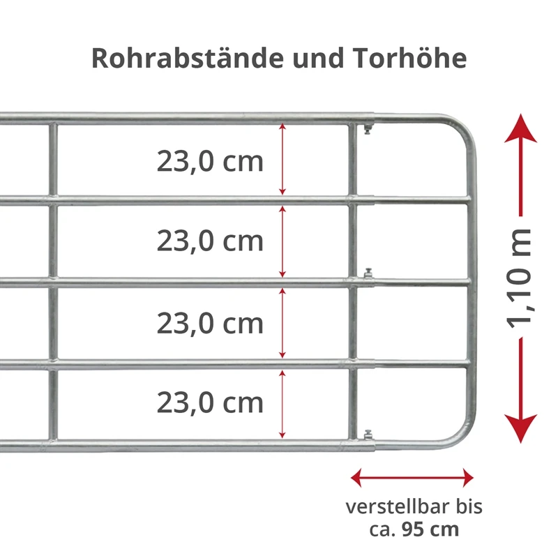 VOSS.farming Weidetor verzinkt – verstellbar 305-400cm (Höhe: 110cm)