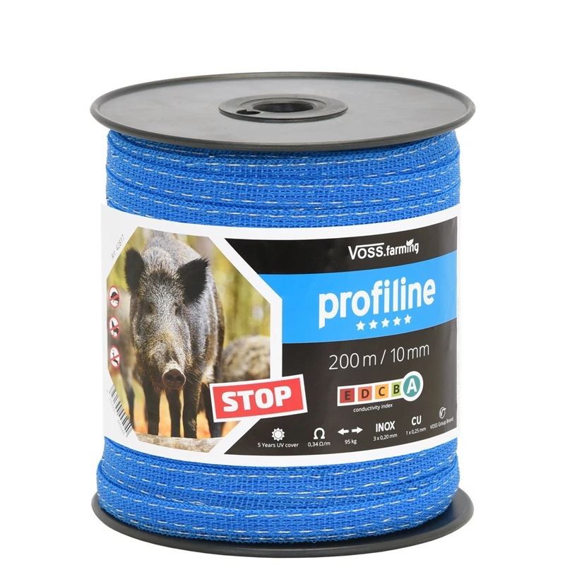 - 1x VOSS.farming Weidezaunband Wildabwehr 200m, 10mm, 1×0,25 Kupfer + 3×0,20 Niro, blau