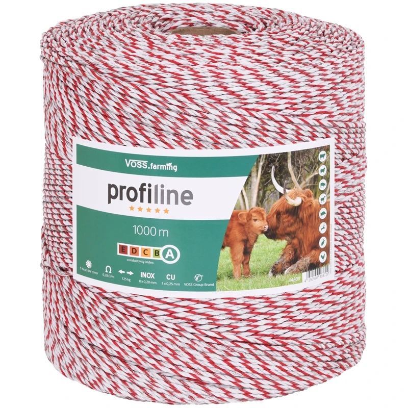 VOSS.farming Weidezaun-Litze 1.000m, 1x 0,25 Kupfer + 8x 0,20 Niro, weiß-rot