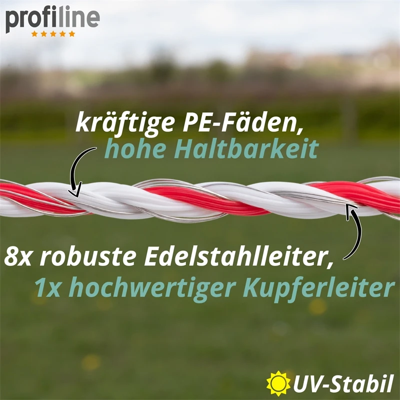 Die Weidezaunlitze ist dick und robust, mit 9 Leitern für hohe Leitfähigkeit!