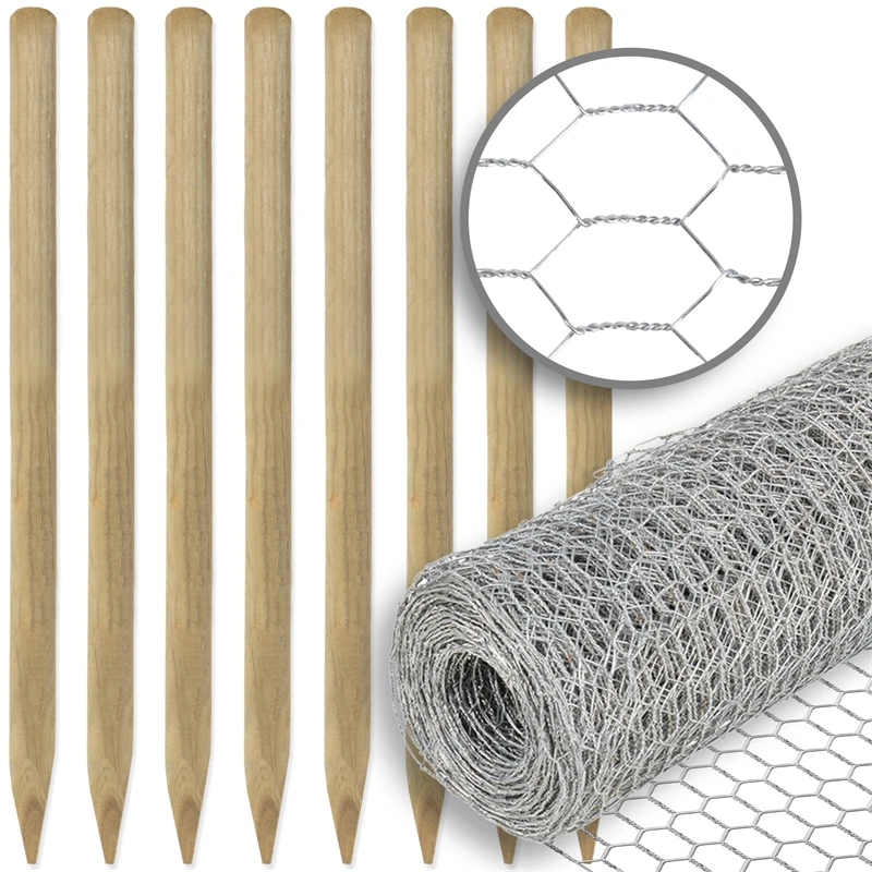 VOSS.farming Zaunset, Gartenzaun-SET: Sechseckgeflecht 10mx100cm + 8x Holzpfähle