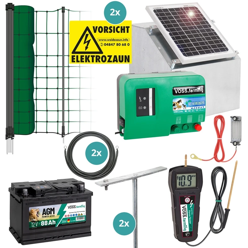- 1x VOSS.farming Komplettset: 12W Solarsystem + Box + 12V Weidezaungerät GreenEnergy + 88Ah Akku