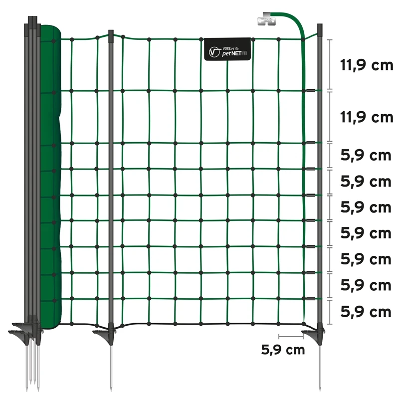 Das Kleintiernetz hat eine Länge von 10 Metern, was die Einzäunung von kleinen Flächen, kurzen Strecken oder Durchgängen schnell und einfach möglich macht. Das neue, 65cm hohe petNET®-Elektronetz aus dem Hause VOSS.pet® überzeugt durch gute Qualität zum fairen Preis!