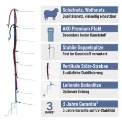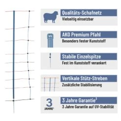 AKO TitanNet Premium 50m Schafnetz, 90cm, 14 Verst. Pfähle, 1 Spitze, Starre Streben, Blau-orange
