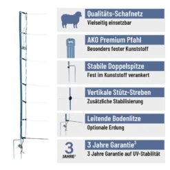 AKO TitanNet Premium 50m Schafnetz, 90cm, 14 Verst. Pfähle, 2 Spitzen, Starre Streben, Blau-orange
