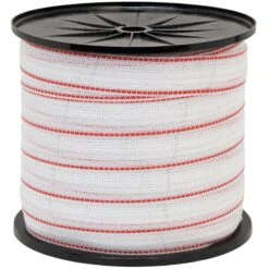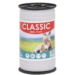 5x Weidezaunband „CLASSIC“ 200m, 10mm, 4×0,16 Niro, Weiß (inkl. 5 Verbinder & Warnschild)