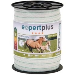 5x VOSS.farming Weidezaunband 200 M, 20 Mm, 5×0,16 Niro, Weiß (inkl. 5 Verbinder & Warnschild)